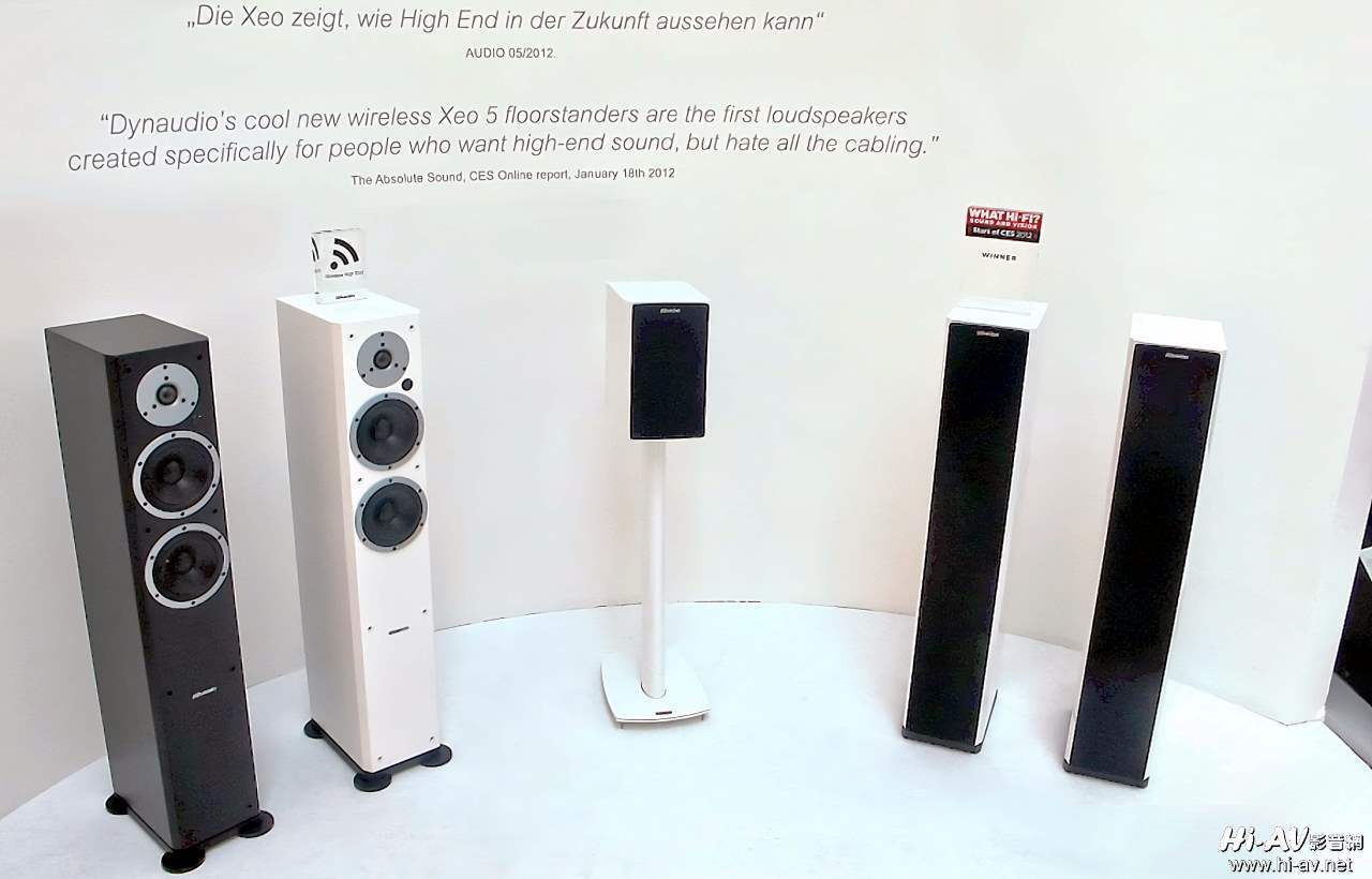 緊接著是2012年5月在德國慕尼黑音響展的展出,Dynaudio同樣以Xeo系列作為展出主角,十餘坪大的展房竟然還刻意以小巧的Xeo 3開聲、較大的落地款Xeo 5則晾在旁邊靜態展示,為的就是凸顯Dynaudio Xeo 3驚人的飽滿能量與現場感性能,同時亦傳達「無線 ‧ 主動」的超簡潔音樂聆賞氛圍(本站當時的現場報導請見這裡)。