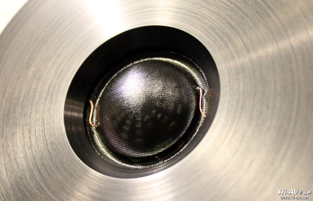 其實它是源自於Dynaudio新旗艦New Confidence系列Esoteric3高音的Hexis圓頂結構,它有許多尺寸不同的方孔,整體的圓頂曲面則是與高音振膜相符的,兩者之間會有2mm左右的間隙,透過這些特別設計的方孔,Hexis可消除振膜背面氣流所造成之頻率響應變化與不必要的共振,使得高音單體的發聲更為精準。
