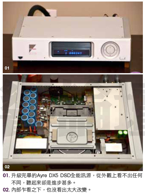 跟Brent講了我的情況,並謝謝他的好意。沒想到Brent的反應是:其實Ayre同時也會推出DX5的DSD升級版。不如我將DX5寄回Ayre升級成DSD版,美、加來回運送的時間,加上實際施工的時間,應該差不多一個月。等我收到升級完的DX5,開聲煲透之後,約莫AX5也有貨了,剛好可以合併試聽。 Ayre DX5 DSD升級版的世界首發評論?這個主意真好。於是,便挑了個黃道吉日,把DX5重新打包寄回原廠,再到Ayre網站用信用卡繳付了升級費用。音響系統則用Ayre CX7先頂著聽。