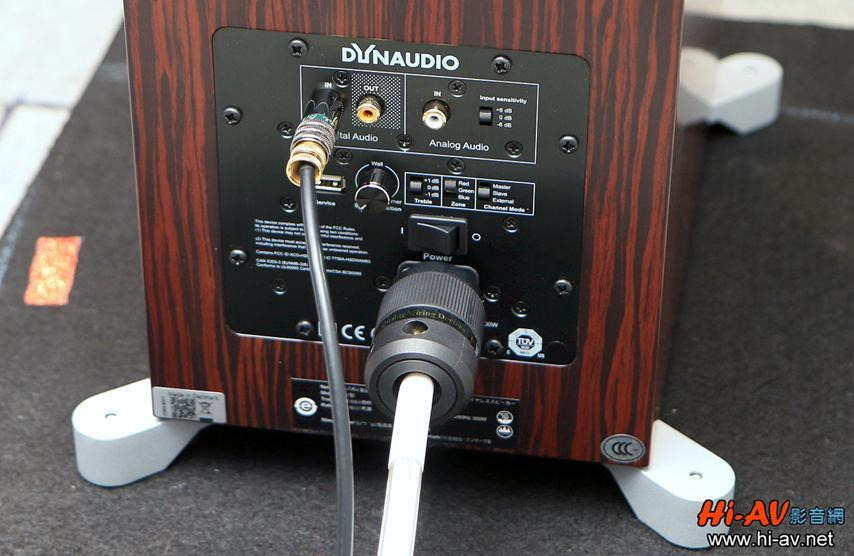 Focus XD系列三款喇叭背面底部的接線板看起來都是一樣的,使用有線數位輸入時,Focus XD系列製品最高可支援至192kHz/24bit取樣率,用家從數位訊源的數位輸出接一條訊號線過來,這支Focus XD喇叭就設定為Master,再以另一條同軸數位線輸出到另一支Focus XD(並將其設定為Slave),如此兩支Focus XD就可以同步控制。當然,兩支Focus XD也可以無線傳輸音訊,但如此一來數位訊號傳輸上限就降為96kHz/24bit。