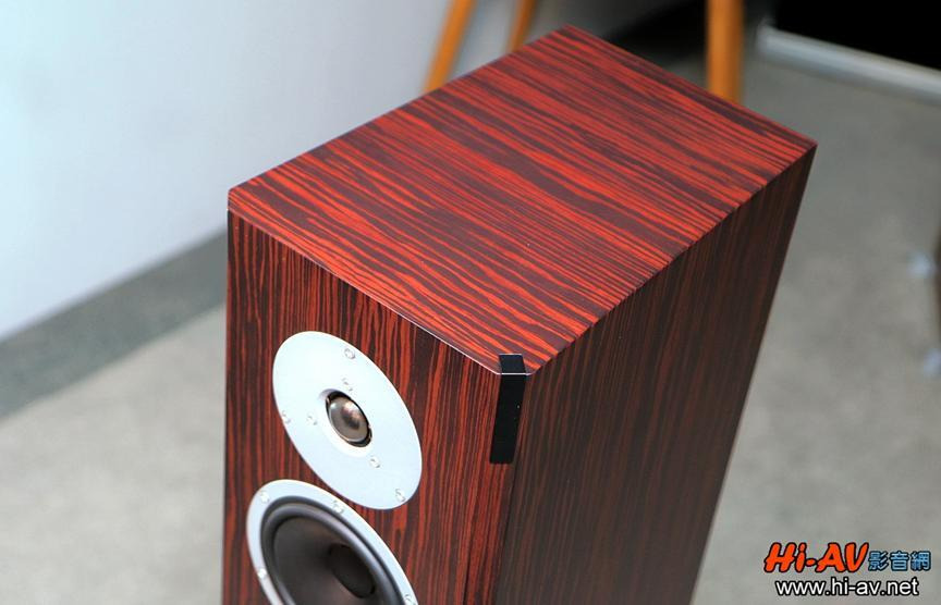 從 頂部往下看,可以發現Focus XD的音箱左右兩側不是平行面,整體呈現前寬後窄的狀態,如此可降低聲波在音箱內的共鳴,進一步提升中低音的清晰度,也可讓音像刻畫與音場呈現更好。 Focus XD系列喇叭在前面板內側最上方有一黑色長條狀的顯示接收窗,上面的LED燈號可顯示Focus XD的工作狀態與音量大小。