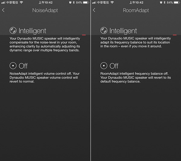 下載App之後,直接點開,初次使用,會出現了上述畫面,根據指示即可完成設定。 第二個厲害之處是RoomAdapt,從字面上看也很容易猜出來,這其實就是一種因應空間的聲音優化功能。這在一體式音響上早就有了,例如Naim Mu-so有「離背牆距離」的設定,會根據離牆距離調整低頻的量感;又如Paradigm的PW800和PW600,他們有Anthem開發的ARC空間校正功能,可以根據空間的聲響條件優化聲音。但是,前者只能調整低頻,後者還需要透過麥克風連接,才能進行校正;而且,它們都需要使用者進行操作。等等,最後我說了什麼?使用者進行操作。