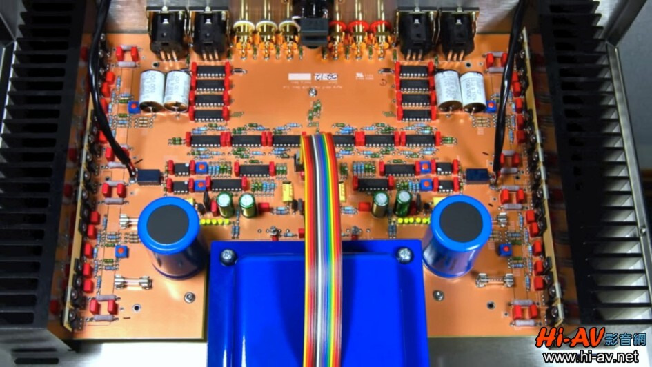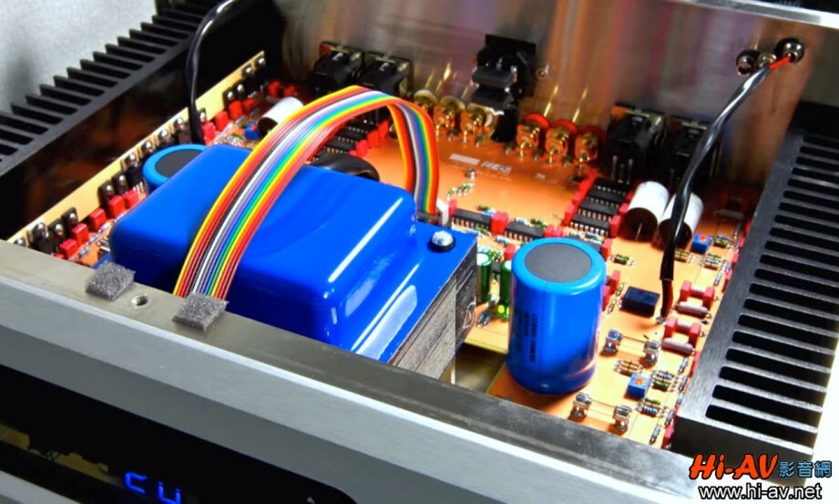 移去頂蓋,就可以看到機箱前方中央是大得誇張的EI型電源變壓器以及容量高達18,00uF的電源濾波電容,它們就是Ayre AX-7e豐沛力量的來源。 20160108180030