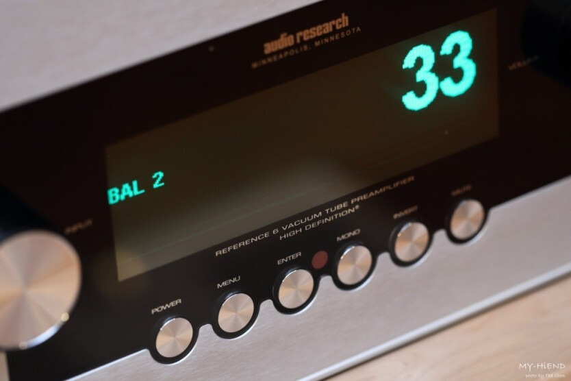 Audio Research REF 6本質上是完完全全的類比訊號前級擴大機,用途很單純,並不像另一部G系列的GSPre有其他的功能。REF 6為了達到最佳的聲音,在很多部份都更換更優質的元件,甚至增加了真空管的使用數量。 左右旋鈕分別切換輸入源和音量,下方六個按鈕依序是電源、Menu、Menu的確認鍵Enter、切換輸出模式的Mono、相位反轉Invert和 靜音Mute。Menu選單中可以設定自動關機、觀看真空管使用時間、調整螢幕亮度、音量預設、編輯輸入源名稱還有當使用環擴時可以在Processor Mode中切換。