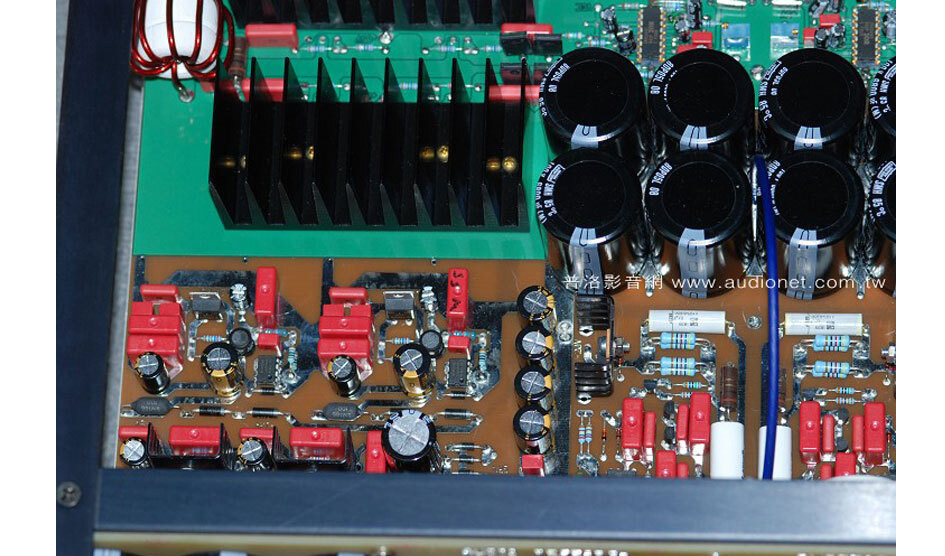 每次看到Audio Research擴大機的內部,都會覺得用家花得每一分錢都值得,DS450也沒有例外。先看到放大電路部分,佈滿了紅色的Wima高級電容與其它高階的元件,可看出原廠為求好聲,不太考慮成本的問題。