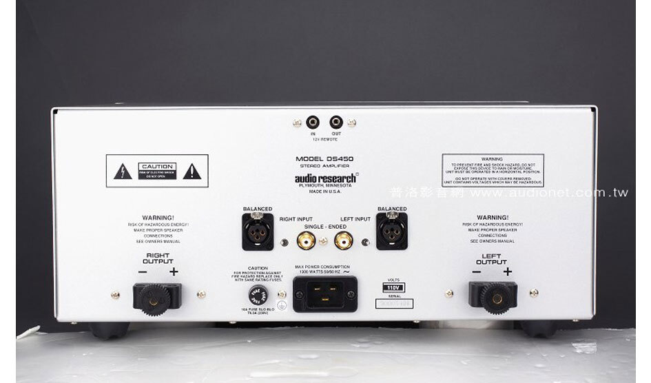 看到這個外觀只要是音響迷都能一眼認出,這就是Audio Research,萬年不變造型,很耐看也很實在。不過這款DS450後級並非Audio Research拿手的真空管電路,而是全新全新的D類放大設計。