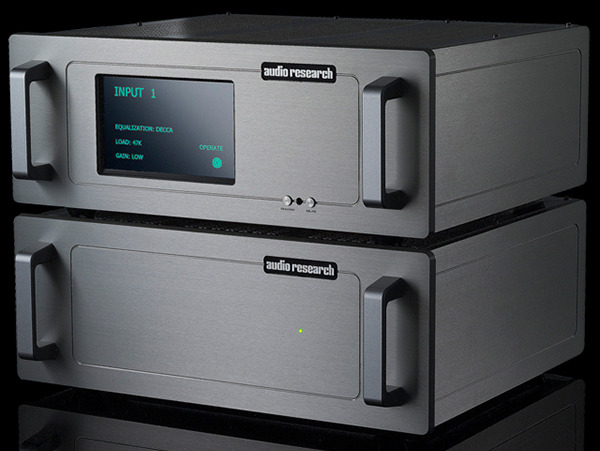 Reference Phono 10是Audio Research旗下產品中,首款採用分離式供電的唱頭放大器,兩件式的設計看起來似乎頗有份量,但10公斤的唱頭放大加上15.5公斤的電源供應器,總計起來將近30公斤,可說是重量級的唱頭放大器。 在 外觀設計方面Reference phono 10和前級擴大機Reference 10乍看之下幾乎一模一樣,放大器面板同樣採用擁有觸控功能的大螢幕顯示器,字體以綠色的LED燈顯示,而右側少了調整音量的圓形旋鈕,只保留了最簡單的 電源開關和靜音功能的兩顆按鈕。