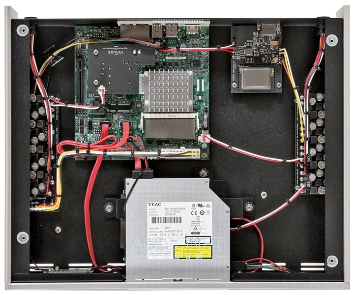 ▲Statement上層機箱內部配置了數位處理線路,主機板使用原廠專為Audio重播需求所打造,捨棄了任何與音訊無關,且容易產生雜訊干擾的元件,並做足了各項抗EMI電磁干擾,硬體使用的BIOS執行韌體也是由原廠專為Statement所開發。 在內文一開始,我特別提到Innuos是一間很清楚知道自己產品定位的品牌,這點從 Statement身上也能獲得驗證。不同於市面上其他音樂伺服器總是希望可以支援最多組的數位輸出以提供不時之需,Innuos對於Statement的市場定位非常清楚:就是只為了市面上最好的USB DAC服務!