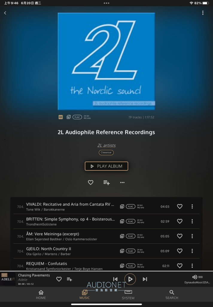 ▲個人很喜歡Innuos原廠App的播放畫面,點進去音樂播放介面,各項訊息也相當完整,包括漂亮的專輯封面以及清楚的音樂資料,在歌曲清單中也可得知檔案規格以及音樂取樣率等資訊。