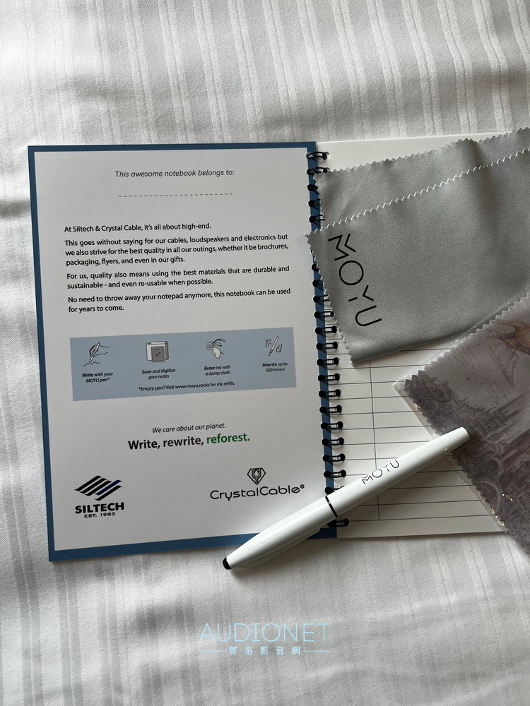 另一個成功的原因我想是公司形象的建立與維持。這次餐後,Siltech贈送與會者一本筆記 本,我原以為這很普通,打開一看,才知道這不是普通的紙本筆記本,而是用所謂Stone Paper製成的筆記本(聽說是台灣精品)。這種非紙漿製成的紙可以用特殊墨水重複書寫、擦掉再重複使用。連同筆記本還有一支Moyu筆,以及擦拭的軟布。這本筆記本估計可以節省4.5 公斤的紙漿,對於保護地球起了一定的作用。