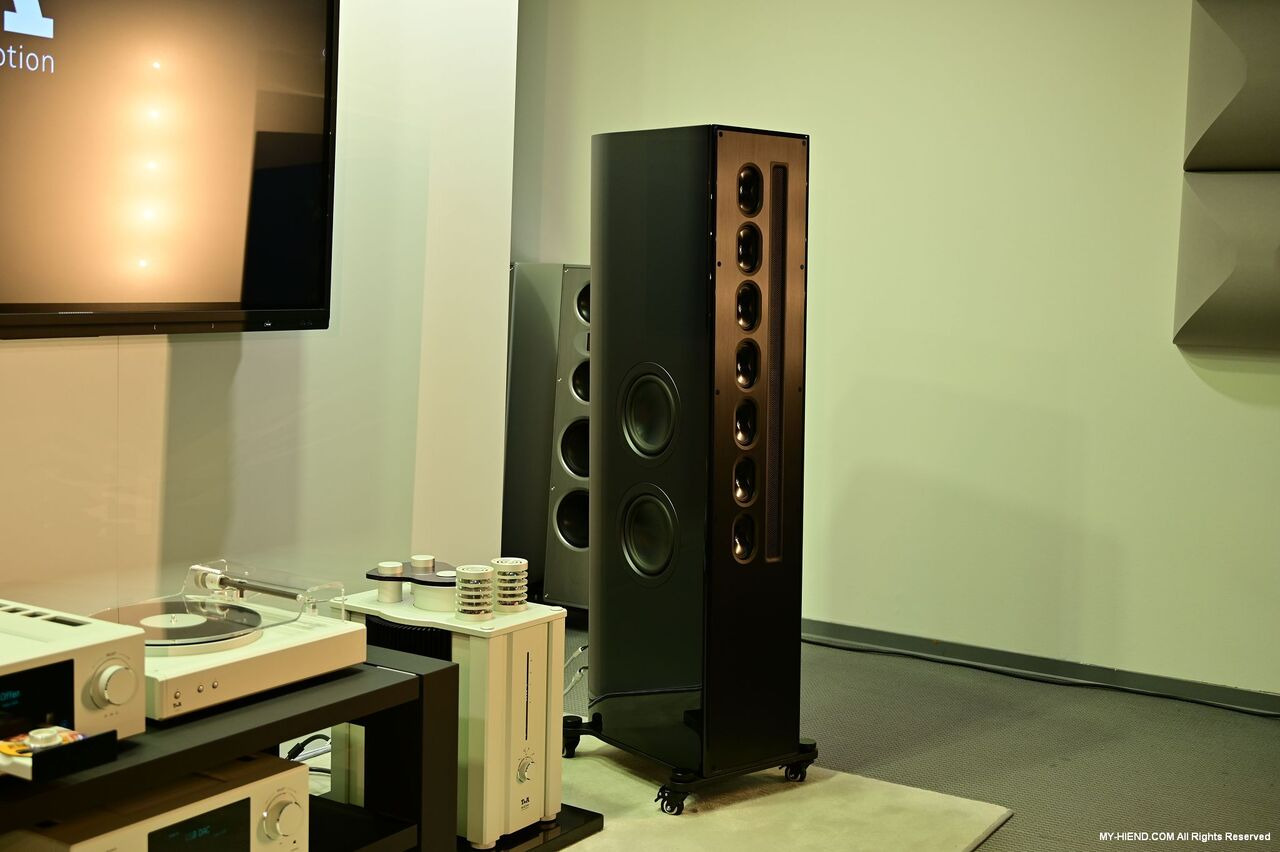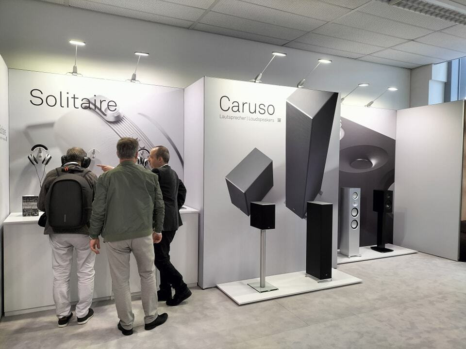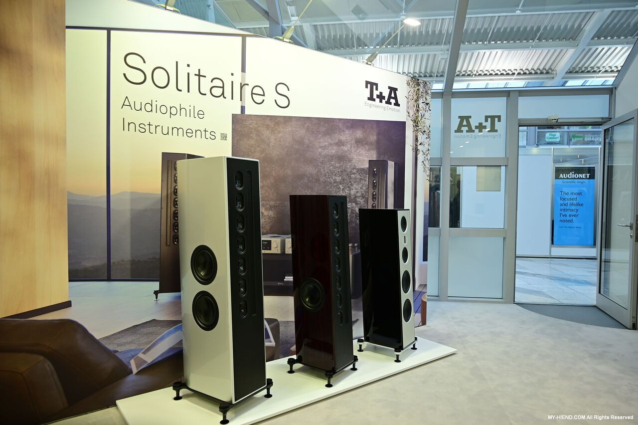 T+A今年以Solitaire S系列旗艦落地式喇叭領軍動態展示,HV、200、R系列與Solitaire耳擴及耳機都有展出,最值得注意的當然是最新發表的Caruso書架與落地式喇叭了。