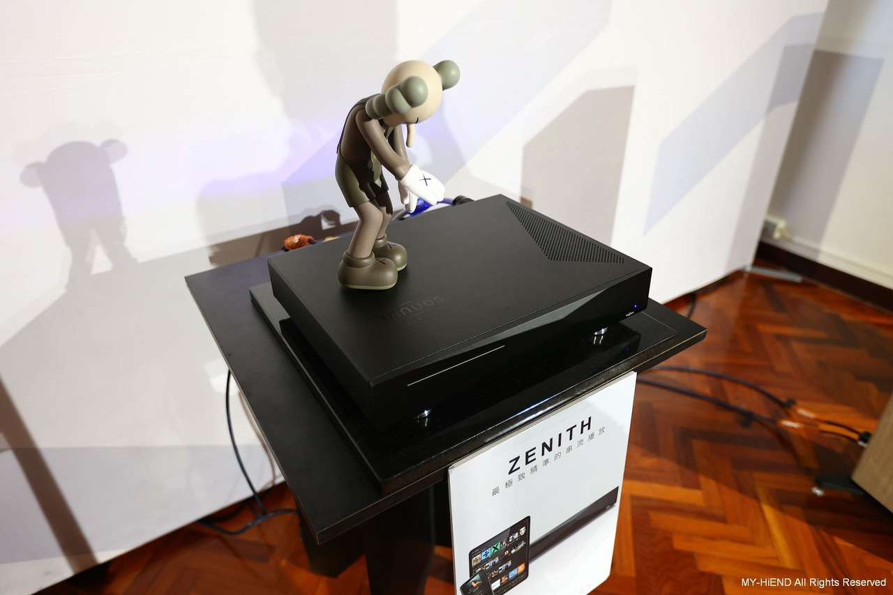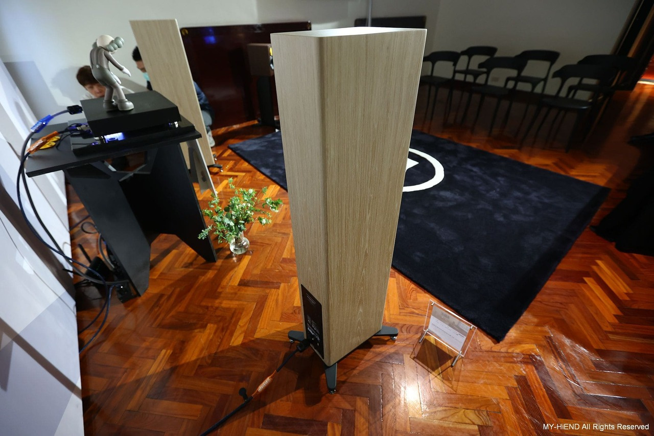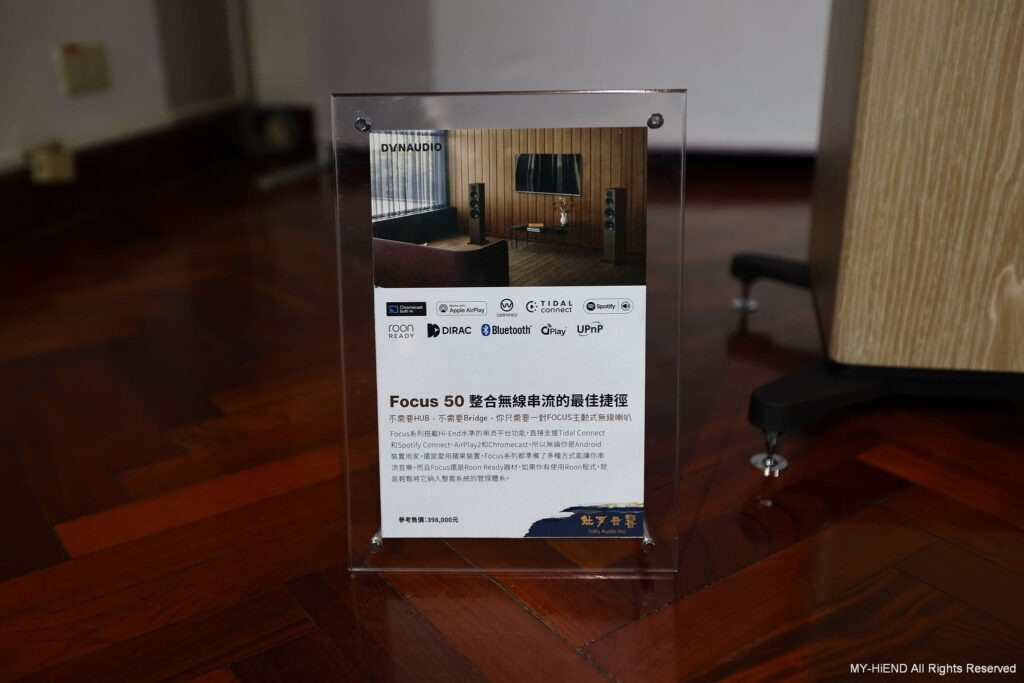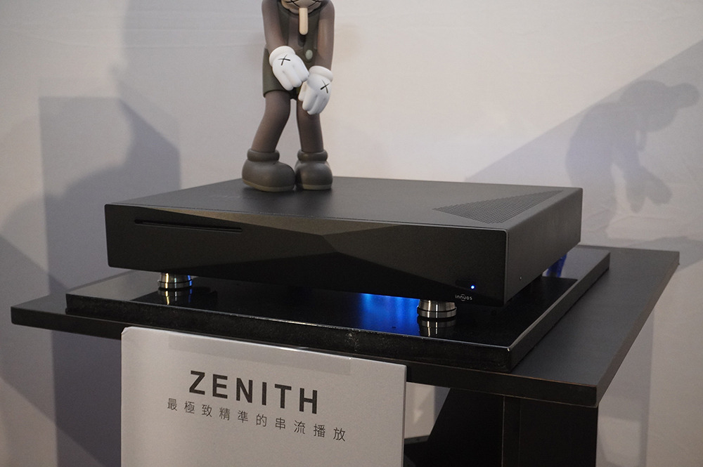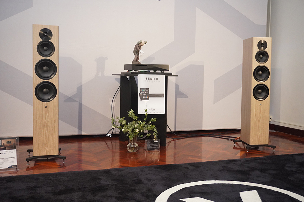 這間超重要!Dynaudio 最新推出的數位主動無線喇叭Focus系列,現場以逼近中型落地喇叭的Focus 50發聲,另靜態展示最小的書架式喇叭Focus 10。Focus 50 每一顆單體都由獨立放大模組驅動,喇叭不經過分音器,避免了相位失真的疑慮。高音單體均採用Dynaudio最新的Cerotar/ Hexis絲質軟半球高音,這是由旗艦喇叭Confidence系列下放的技術。中音、中低音或低音單體,均是Dynaudio最引以為傲的MSP單體。 Focus系列最大賣點就是無線設計,它可接受WiFi和藍牙,最高支援24bit/ 192kHz取樣率,支援的串流服務包括Roon Ready、AirPlay2、Chromecast、Tidal Connect、Sopity Connect、Qplay、UPnP等,一應俱全。除了串流應用,用家也可以透過同軸和光纖傳輸,連接其他的數位訊源。現場還可見到 Innuos Zenith Mini MK3音樂伺服器,可作為Roon Core或Roon Ready,並可支援Tidal、Qobuz、Spotify等服務。