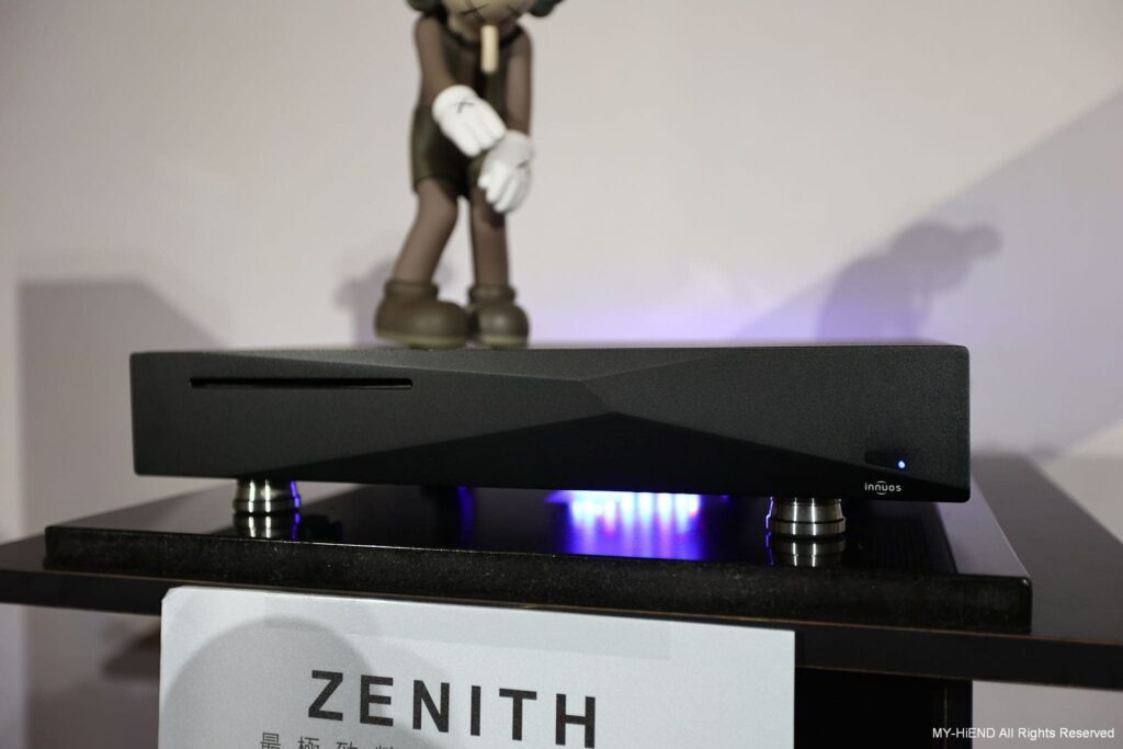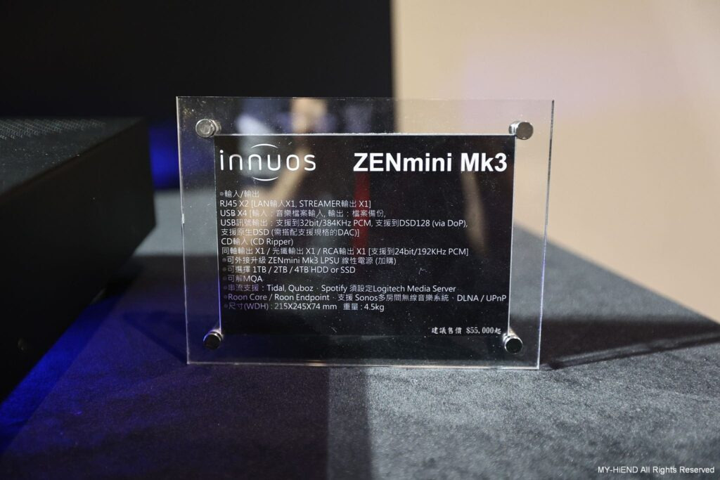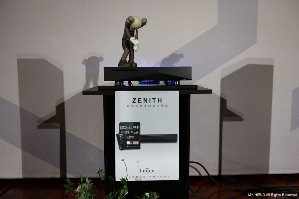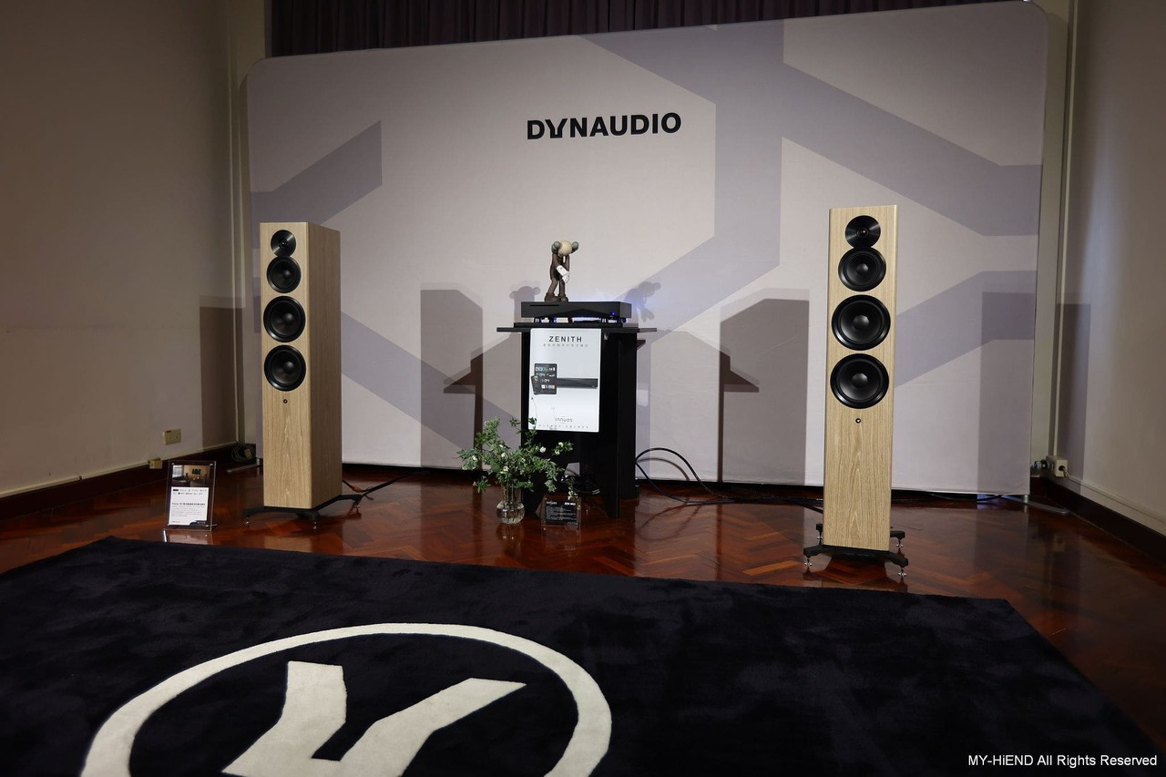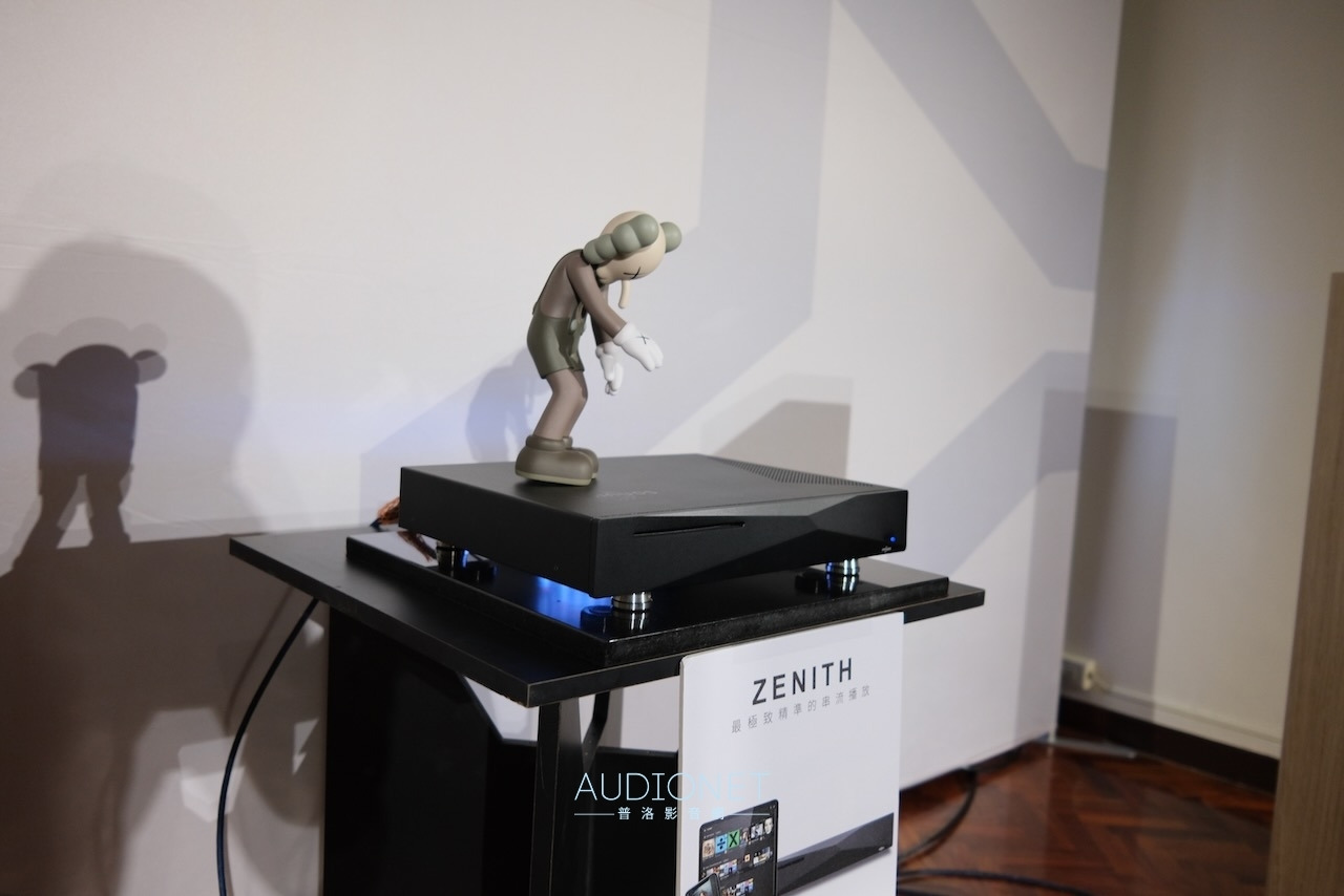 這間超重要!Dynaudio 最新推出的數位主動無線喇叭Focus系列,現場以逼近中型落地喇叭的Focus 50發聲,另靜態展示最小的書架式喇叭Focus 10。Focus 50 每一顆單體都由獨立放大模組驅動,喇叭不經過分音器,避免了相位失真的疑慮。高音單體均採用Dynaudio最新的Cerotar/ Hexis絲質軟半球高音,這是由旗艦喇叭Confidence系列下放的技術。中音、中低音或低音單體,均是Dynaudio最引以為傲的MSP單體。 Focus系列最大賣點就是無線設計,它可接受WiFi和藍牙,最高支援24bit/ 192kHz取樣率,支援的串流服務包括Roon Ready、AirPlay2、Chromecast、Tidal Connect、Sopity Connect、Qplay、UPnP等,一應俱全。除了串流應用,用家也可以透過同軸和光纖傳輸,連接其他的數位訊源。現場還可見到 Innuos Zenith Mini MK3音樂伺服器,可作為Roon Core或Roon Ready,並可支援Tidal、Qobuz、Spotify等服務。