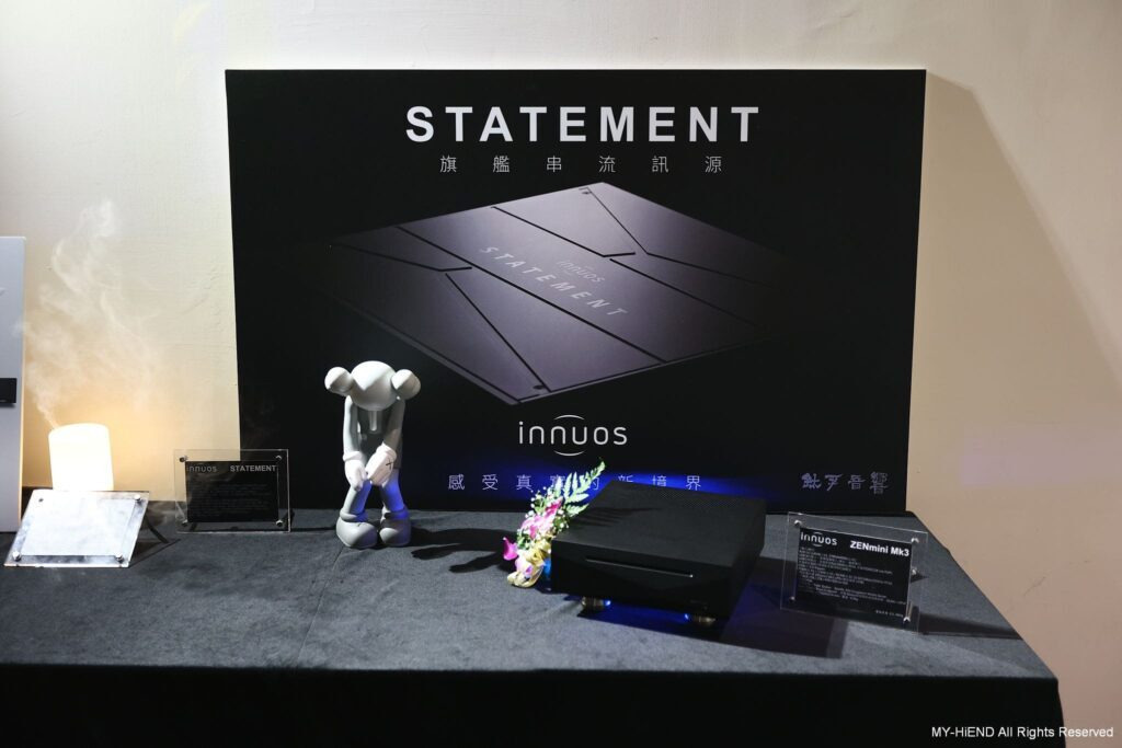 另外也可以看到Innuos ZENmini MKIII,是更入門的選擇,也是可以搭配主動式喇叭使用, 另外也有展示Dynaudio Focus 10小一號的主動式喇叭。Innuos可說是「重新回歸」至鈦孚的品牌團隊,據現場人員表示,Innuos這次還帶者最旗艦的新產品Statement要一起重回鈦孚的懷抱,只是這部新機種目前還在空運當中,不過應該在不久的將來即可與國人見面,另外現場人員也說,Innuos也有在App更新,操作起來比過去要更順暢,與Roon的銜接也更好,可說是整體的操作使用體驗都比往常要提升好幾個檔次,如果之前還不認識Innuos,現在更是不容許再錯過了。