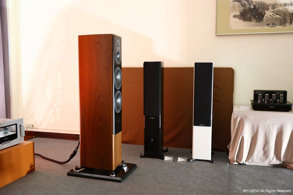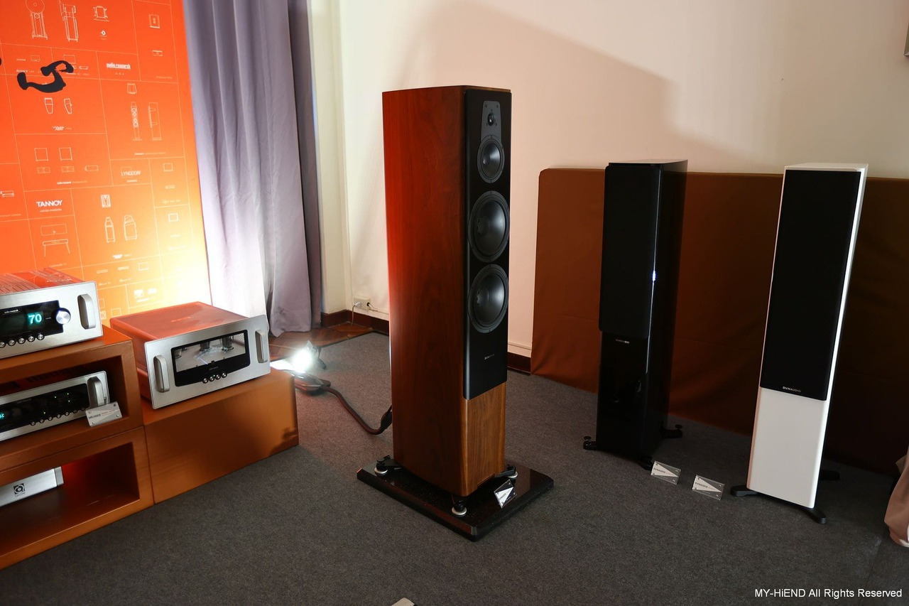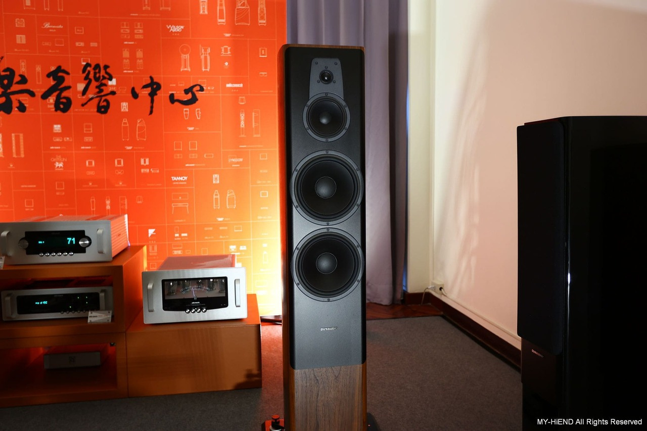 Dynaudio 部分主要為Contour 系列,以Contour 60i主力發聲。Contour 60i採用 Esotar 2i 高音,具有和Esotar 3 高音相同的Hexis 結構,這是一個藏在高音單體內部的網格狀半球形塑膠框,用來打散高音單體的背波,以利內部阻尼吸收背波,以消除背波干擾。低音單體比前代加大了磁鐵,改變了套筒材質,也放大了音圈口徑,音圈套筒,則改用玻璃纖維音圈套筒,也是向 Confidence 看齊的設計,而音圈繞線也換成了銅線。