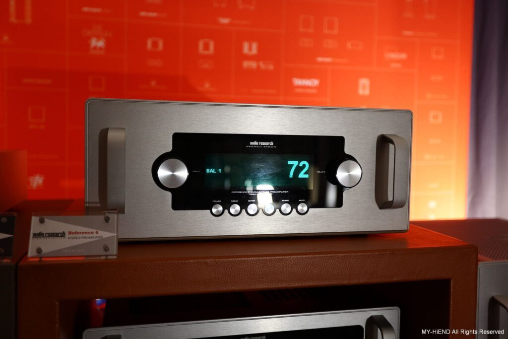 展樂主要展出 Audio Research 系統搭配 Dynaudio 喇叭,雖然不是最新型號,不過這次出動的機型頗多,加上展樂高明的調音手段和布置創意,仍舊十分有看頭。Audio Research 部分,包括 I/50 綜合擴大機、Reference CD9 SE CD 唱盤、Reference 6 前級、Reference 160M 單聲道後級,另外還有GSPre 前級和 GS150 立體聲後級。