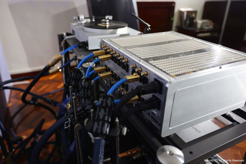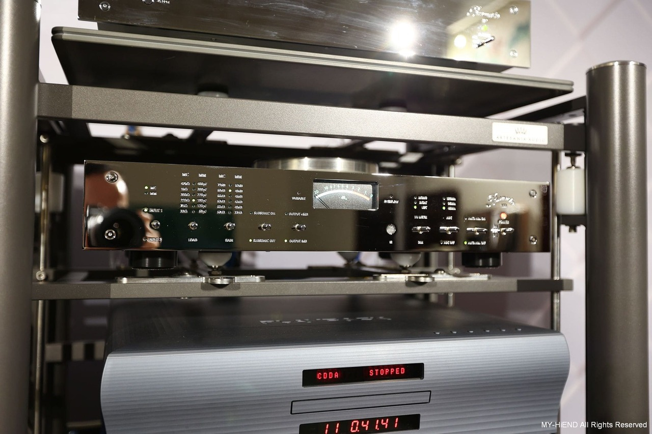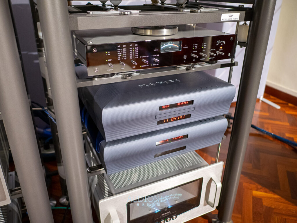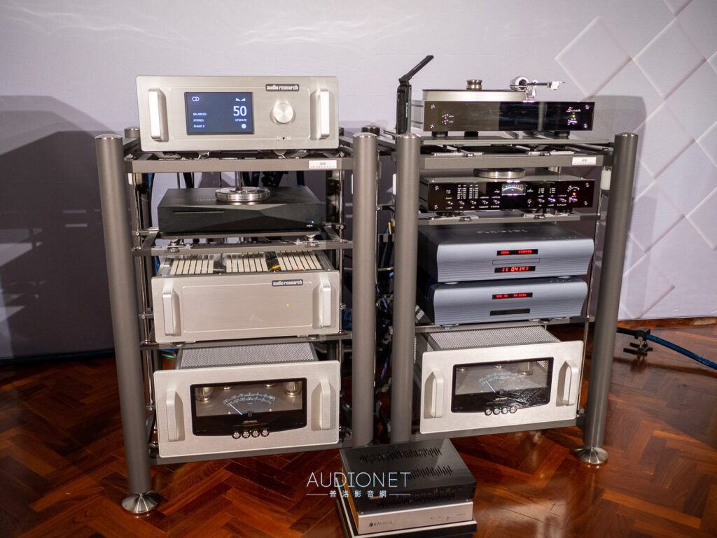 低音採用雙 10 吋低音單體,這也是全新設計訂做的單體,同樣使用碳纖維三明治複合材料振膜,並且搭配 3 吋大型磁力引擎。Cygnus 單一支就重達285磅,相當於130公斤,這等重量級的喇叭,這次豈可錯過! 擴大機搭配全套Audio Research旗艦,前級是 REF 10,後級則是 REF 160M。REF 10 採電源分離設計,內部線路從電源供應就採左右聲道分離的雙單聲道架構。