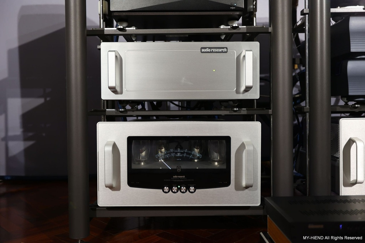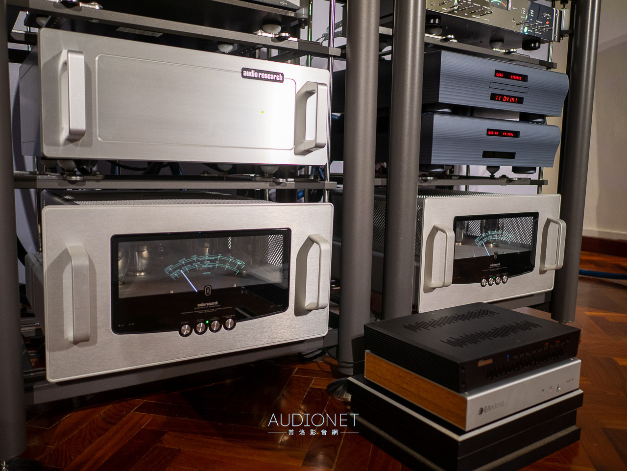 Rockport+Audio Reseach的組合算是經典搭配,Audio Reseach品牌大使David Gordon自 己家裡使用的就是這樣的組合,想要體驗Audio Research旗艦前後級重播風格的朋友,同樣不可錯過324房。 其實Audio Research REF160M單聲道真空管後級的驅動力也夠厲害了,單聲道使用四支 KT150功率管,輸出功率達到150瓦,以管機來說,已經算是頂天的實力了。