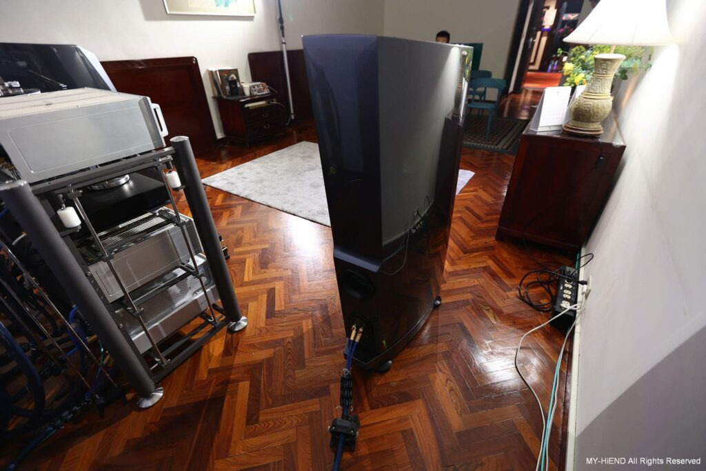 鈦孚今年再度大軍出動,除了三間鈦孚展房之外,如果加上合作經銷商的展房,展出房間總數多達八間,旗下代理產品可謂精銳盡出,可見鈦孚對於南台灣音響迷的重視。第一間報導的是由佳盈負責展出的324房,最大焦點當然是美國超弩級Hi End喇叭品牌Rockport的 Cygnus落地喇叭。