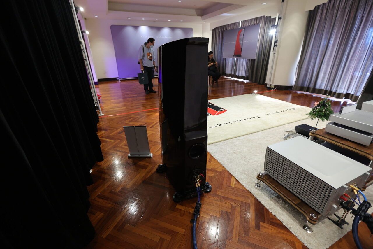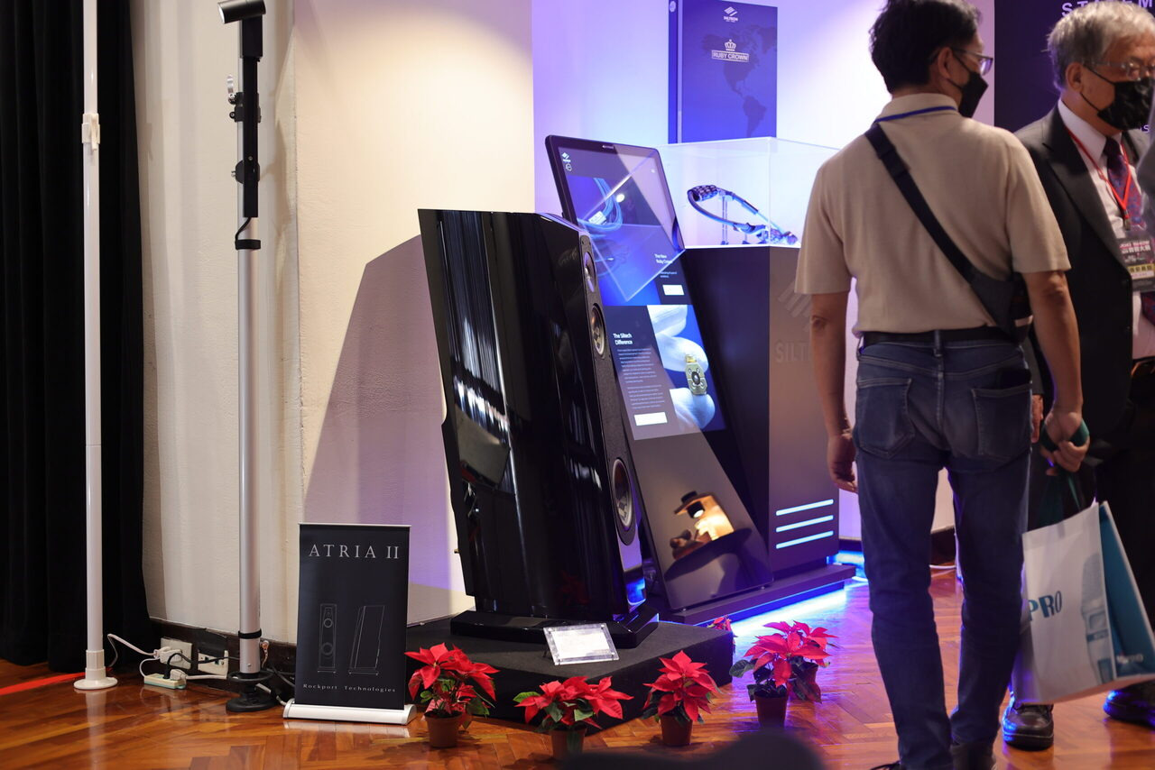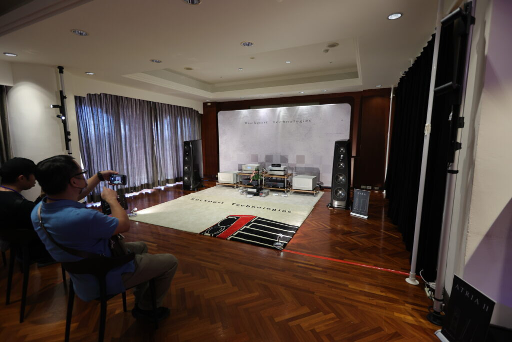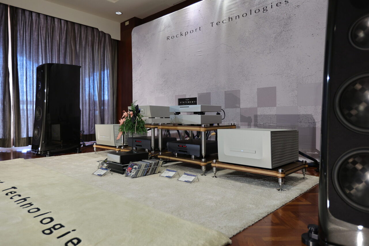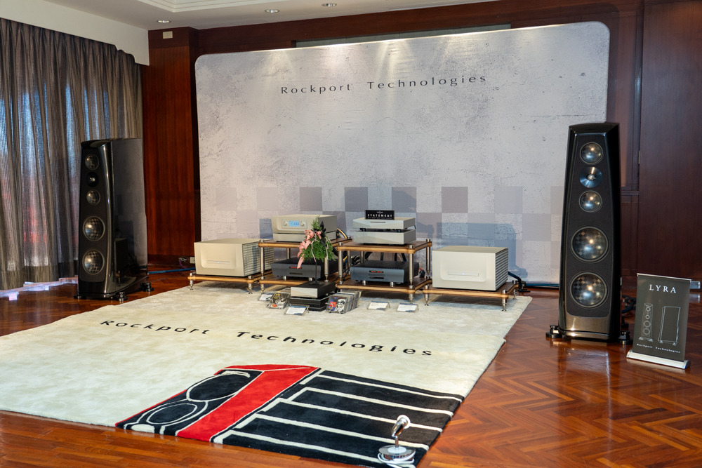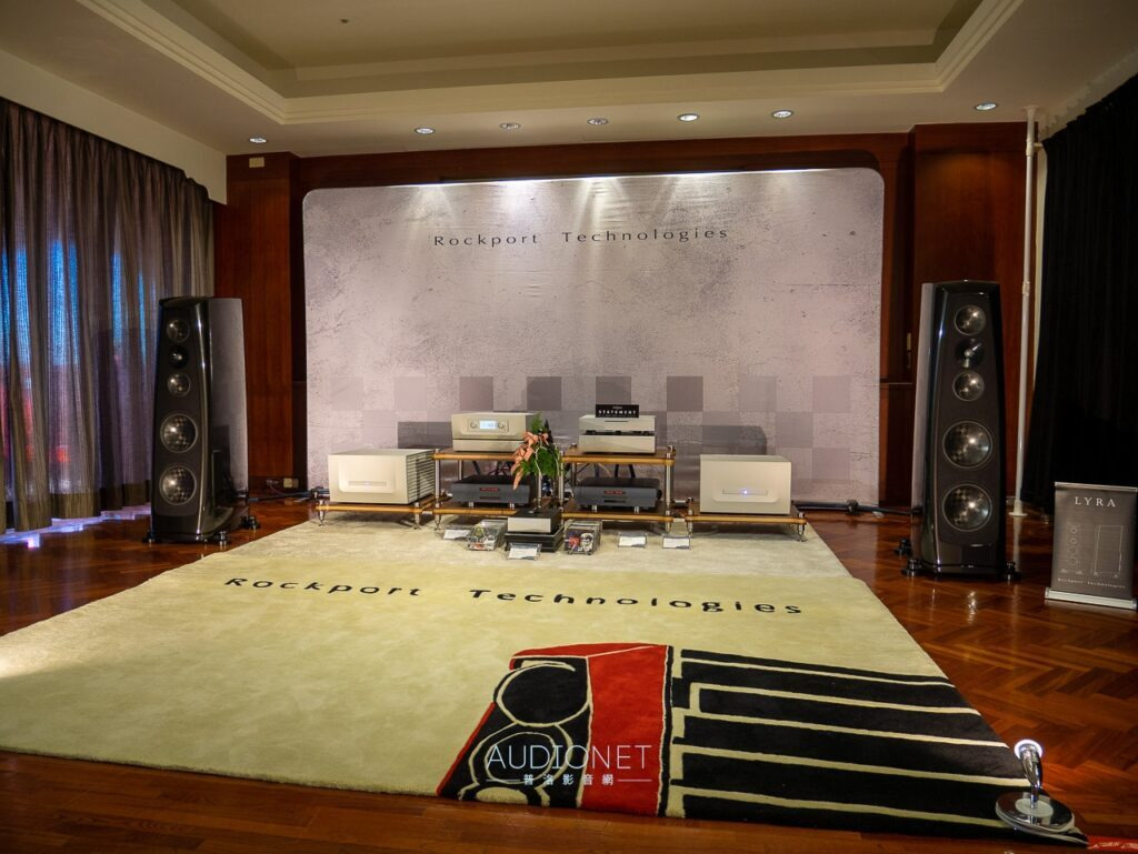 106 鈦孚 本屆鈦孚和極品在 V 樓包辦五個展房,106 號房的主秀是 Rockport Lyra 旗艦喇叭,搭配 Constellation Virgo III / Centaur Mono II 次旗艦前後級,訊源則是 Innuos Statement 旗艦音樂伺服器及 PhoenixNet 網路交換器,外加 Playback MPT / MPD-8 旗艦轉盤和 DAC。 Rockport Lyra 曾經在去年亮相,以複合材料搭配鋁合金骨架構成的 DAMSTIF 結構,在展間的快幕秀可以看到技術示意圖,為了展場佈置,還訂做了 Rockport 商標地毯,同時兼顧調音效果,現場標價 855 萬,不過這是 2023 年的價格,據說明年原廠美金售價調高一萬美元,明年 Lyra 的參考售價也會跟著提高,如果對 Lyra 有興趣,趁著價格還沒漲上去先搶現貨吧。