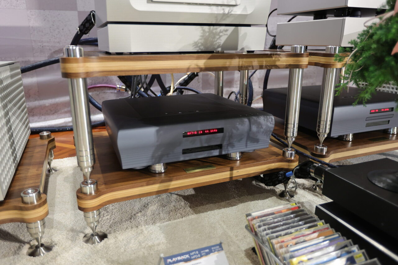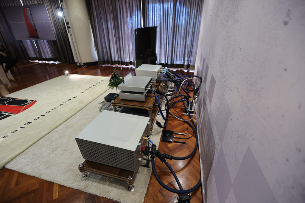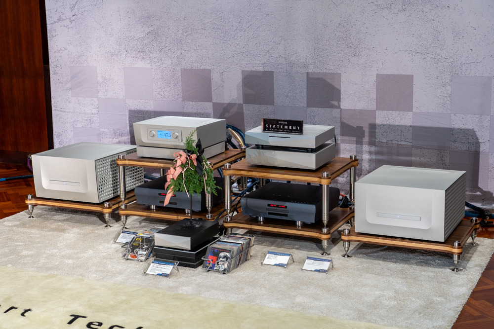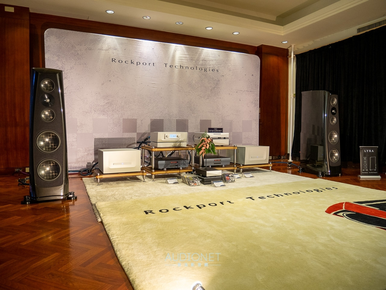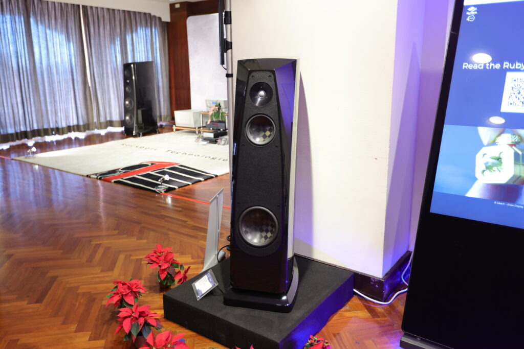 106 鈦孚 本屆鈦孚和極品在 V 樓包辦五個展房,106 號房的主秀是 Rockport Lyra 旗艦喇叭,搭配 Constellation Virgo III / Centaur Mono II 次旗艦前後級,訊源則是 Innuos Statement 旗艦音樂伺服器及 PhoenixNet 網路交換器,外加 Playback MPT / MPD-8 旗艦轉盤和 DAC。 Rockport Lyra 曾經在去年亮相,以複合材料搭配鋁合金骨架構成的 DAMSTIF 結構,在展間的快幕秀可以看到技術示意圖,為了展場佈置,還訂做了 Rockport 商標地毯,同時兼顧調音效果,現場標價 855 萬,不過這是 2023 年的價格,據說明年原廠美金售價調高一萬美元,明年 Lyra 的參考售價也會跟著提高,如果對 Lyra 有興趣,趁著價格還沒漲上去先搶現貨吧。