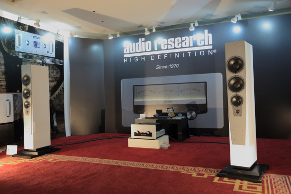 這次鈦孚在二樓開放展區可以說是大軍出動,兩套主力系統輪流發聲,這邊看到的是Dynaudio Confidence C4 Platinum鉑金版喇叭搭配全套Audio Research,包含:REF-CD9 CD唱盤、GSPre前級、GS 150後級。