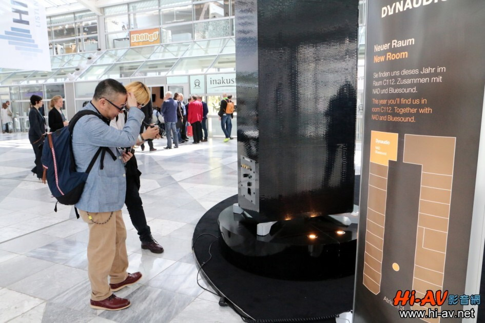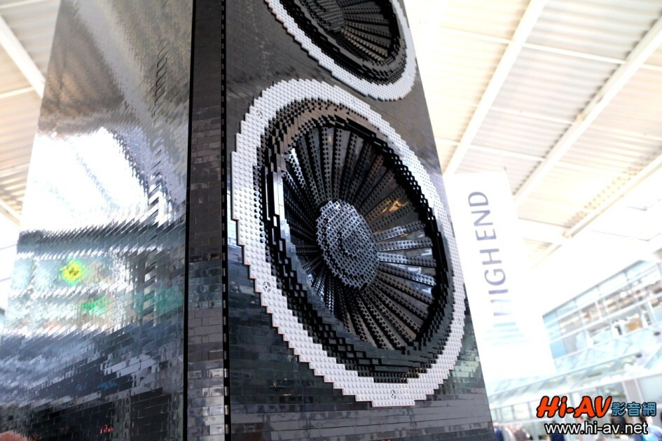 慕尼黑音響展的重量級Hi-End音響品牌展房主要在HALL 4的二樓、三樓與HALL 3的二樓,尤其HALL 4二樓大廳是所有參觀民眾必經之地,此次Dynaudio租下此處最前方的區塊做廣告,而且其方式非常特別——竟然是以樂高積木堆疊出一支超巨大的Focus 600 XD喇叭!說來慚愧,我是經過第三次時走近旁邊細看,才驚覺它竟然是使用樂高積木堆疊出來的,想必是由於它的體型實在太巨大了,潛意識裡根本就不會拿它與樂高積木聯想在一起!