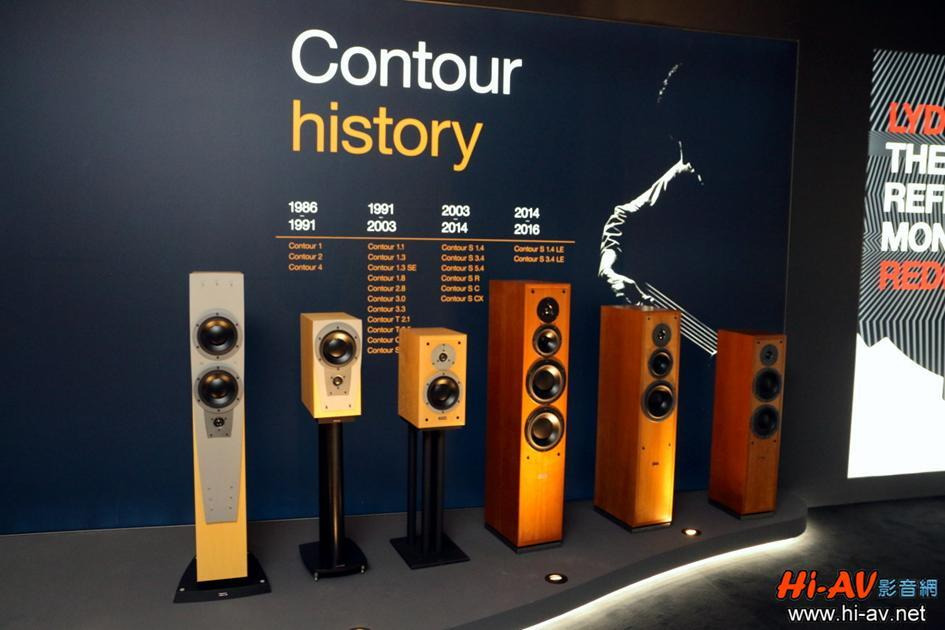 牆面右側陳列著過往的Contour系列喇叭,Dynaudio此系列從1986年就推出了,先前共有四代製品,這次新Contour系列之推出,可真是三十年來最巨大的轉變。
