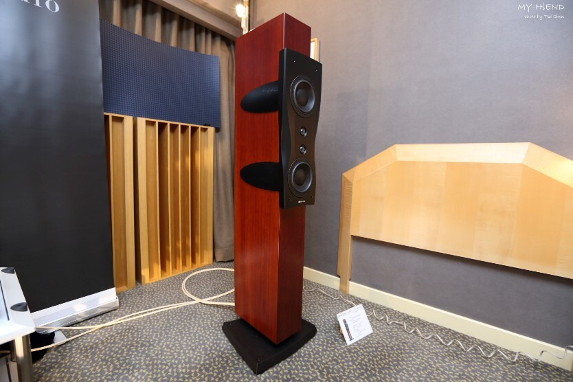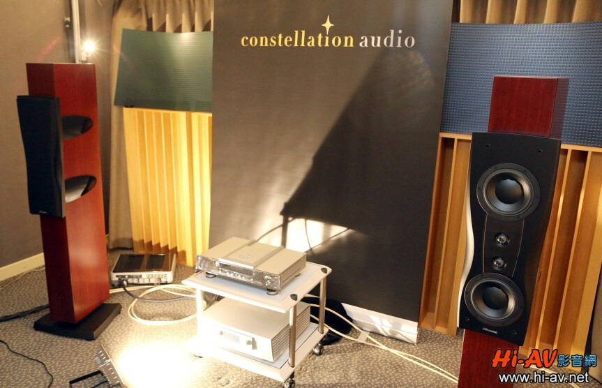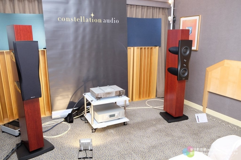 這間展房以丹麥Dynaudio Confidence C2 Platinum鉑金版喇叭擔 綱發聲,搭配美國Constellation Audio Argo綜合擴大機與德國Burmester 061 CD唱盤,可說是「國際級」發燒組合。主角C2 Platinum喇叭是該廠Confidence系列最新製品,為兩音路四單體低音反射式設計,配備Esotar 2軟半球高音與MSP中低音單體各兩支,且均以鏡像對稱方式排列(如同旗艦Evidence系列設計),再搭配設計精良的分音線路,就構成了Dynaudio獨門秘技DDC架構,可有效大幅降低來自天花板及地板的反射音,並減少喇叭擺位與聆聽空間不良的影響。 20160418021256