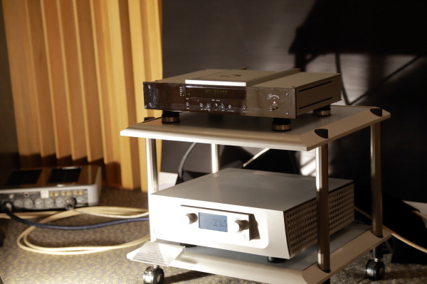 五樓大多數展房的空間都不大,不過鳴曲這間卻能以質感取勝,用Burmester 051 CD唱盤、Constellation Argo綜擴搭配Dynaudio Confidence C2 Platinum喇叭,展現出線條清晰、質感絕佳的弦樂。一問之下,我才知道主掌調音的是鳴曲張老闆的兒子,果然虎父無犬子!