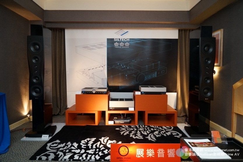 台南展樂音響也來參展,房間裡面的焦點就是Siltech 那套傳奇前後級Saga,這套前後級內部設計獨特,電池供電,我们已經介紹過不僅一次,是很棒的擴大機。由於限量,所以價格不低,要價75,000歐元。為何展樂邱老闆會敢賣這麼昂貴的擴大機呢?邱老闆說他聽過這套擴大機之後,覺得聲音實在太棒了,心癢難耐,所以決定要賣他。現場我請他播放Marten Recordings那張「Supreme Sessions One」,這張CD我很熟,一聽馬上知道這套Saga擴大機音質音色都非常好,聽這麼直接的錄音時,完全沒有一絲粗糙與過度剛性之感,入耳的都是很美的音質,以及非常真實的樂器人聲。好東西需要識貨者,Siltech這套擴大機是真正的好東西。