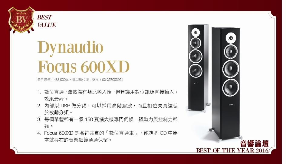 2016年度風雲器材--BEST VALUE Dynaudio Focus 600 XD
